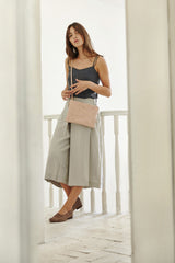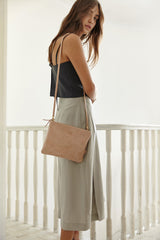 Sobre de cuero liviano con correa delgada para colgar al hombro. Forrada con genero y cerrado con cierre metálico YKK con tirador de cuero trenzado. Muy cómoda y práctica para acompañarte siempre, de noche y de día, en todo tipo de ocasiones.