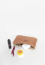 Estuche de cuero cerrado con cierre de bronce dorado YKK. Puedes usarlo como billetera, monedero o para guardar algunas cosas pequeñas para que no vuelen dentro de tu cartera.
