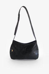 Cartera de cuero tipo Baguette Bag . Cerrada con cierre metálico YKK y tirador de cuero y bolsillo interior tipo sobre. Correa ajustable por medio de broche bolita.