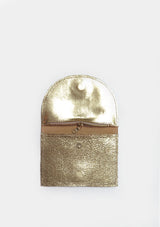 Su base es un bolsillo para tarjetas y en la solapa tiene un espacio para papeles o boletas y un monedero cerrado con cierre de bronce dorado YKK. Ambas partes se adhieren por imán invisible para el cierre.