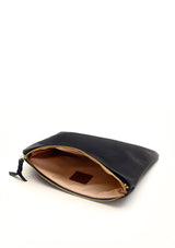 Estuche de cuero forrado al interior y cerrado con cierre de bronce dorado YKK. Úsalo como cartera para llevar solo lo indispensable o como estuche para organizar el interior de tu cartera guardando lápices, anteojos, maquillaje u otros accesorios pequeños.