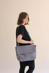 Cerrada con cierre metálico YKK y solapa adherida con broche de imán. Con mango fijo para tomar con la mano o llevar hombro. Correa larga ajustable y desmontable con mosquetones.