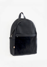 Material: Cuero Natural liso. Bolsillo exterior frontal de cuero reno terminación gamuza.