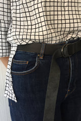 Cinturón de cuero delgado y liviano para llevarlo con comodidad. Puedes usarlo en distintas ocaciones, con pantalones o con vestido y ajustarlo a la cintura o a la cadera.