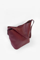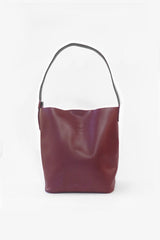 Bolso de cuero de base rígida que otorga estructura y lo mantiene erguido. Tiene dos bolsillos interiores tipo sobre para celular, llaves y otros pequeños accesorios. Con correa ajustable para llevar al hombro.