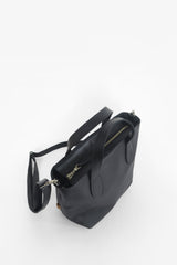 Totebag de capacidad media. Con dos mangos y una correa larga para llevar al hombro o cruzada desmontable con mosquetones. Cerrada con cierre metálico YKK y tirador de cuero. Bolsillo interior tipo sobre para guardar celular y otros pequeños accesorios.