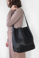 Bolso de gran tamaño con una correa fija para colgar al hombro. Cerrado con broche imán y un amplio bolsillo interior tipo sobre.